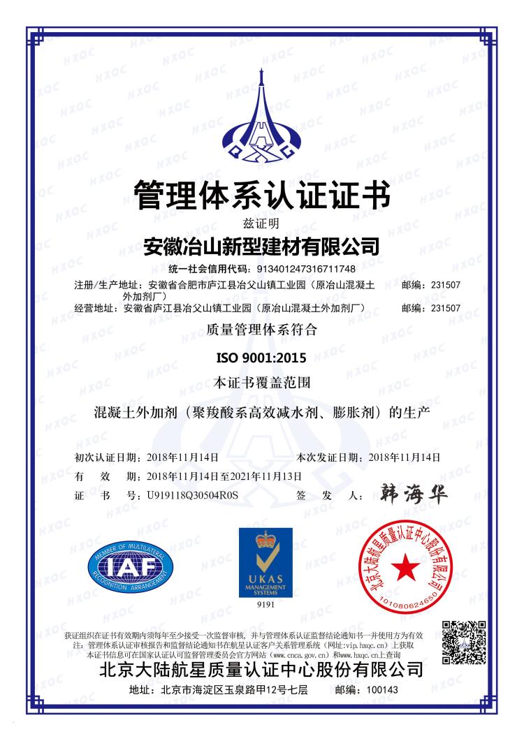 管理體系認證證書中文版