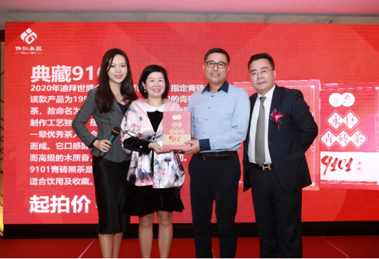 開業儀式上,湖南省茶葉體系首席專家包小村、中國制茶大師盧明德為現場簽售拍賣的“偉仁永巨黃金磚”親筆簽名。偉仁永巨黃金磚為“茶祖神農杯”金獎茶,2020年迪拜世博會中國館宴會廳官方指定青磚黑茶。經過青磚茶的渥堆冷發酵和茯磚茶的金花發花兩大工藝精心制作而成的黃金茶,加上兩位茶專家加持,恰逢盛宴,現場拍賣十分熱烈!