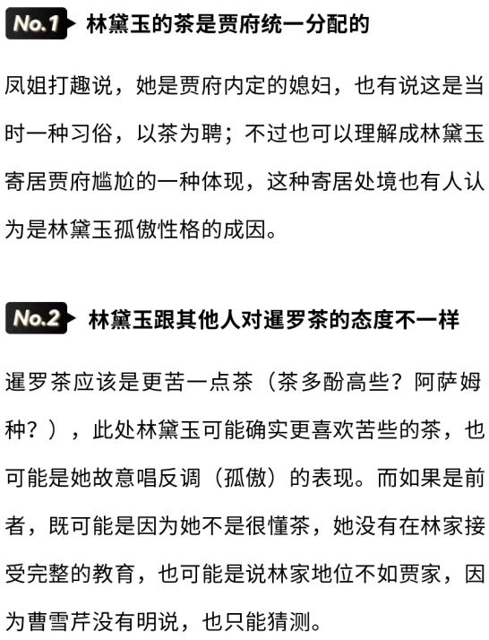 打個廣告,我覺得林之孝家讓賈寶玉燜點青磚茶應該也同樣合適,不過青磚茶的興起跟清末中俄貿易有關,曹雪芹年代還不一定有。
